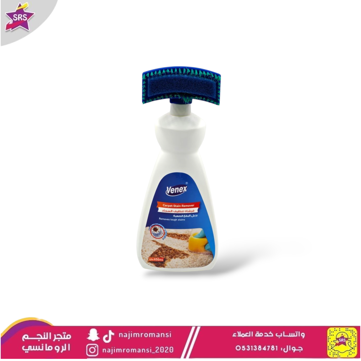 • يعتبر فينكس فرشاة تنظيف السجاد 650 مل الحل الأمثل لإزالة البقع الصعبة من السجاد بسهولة.