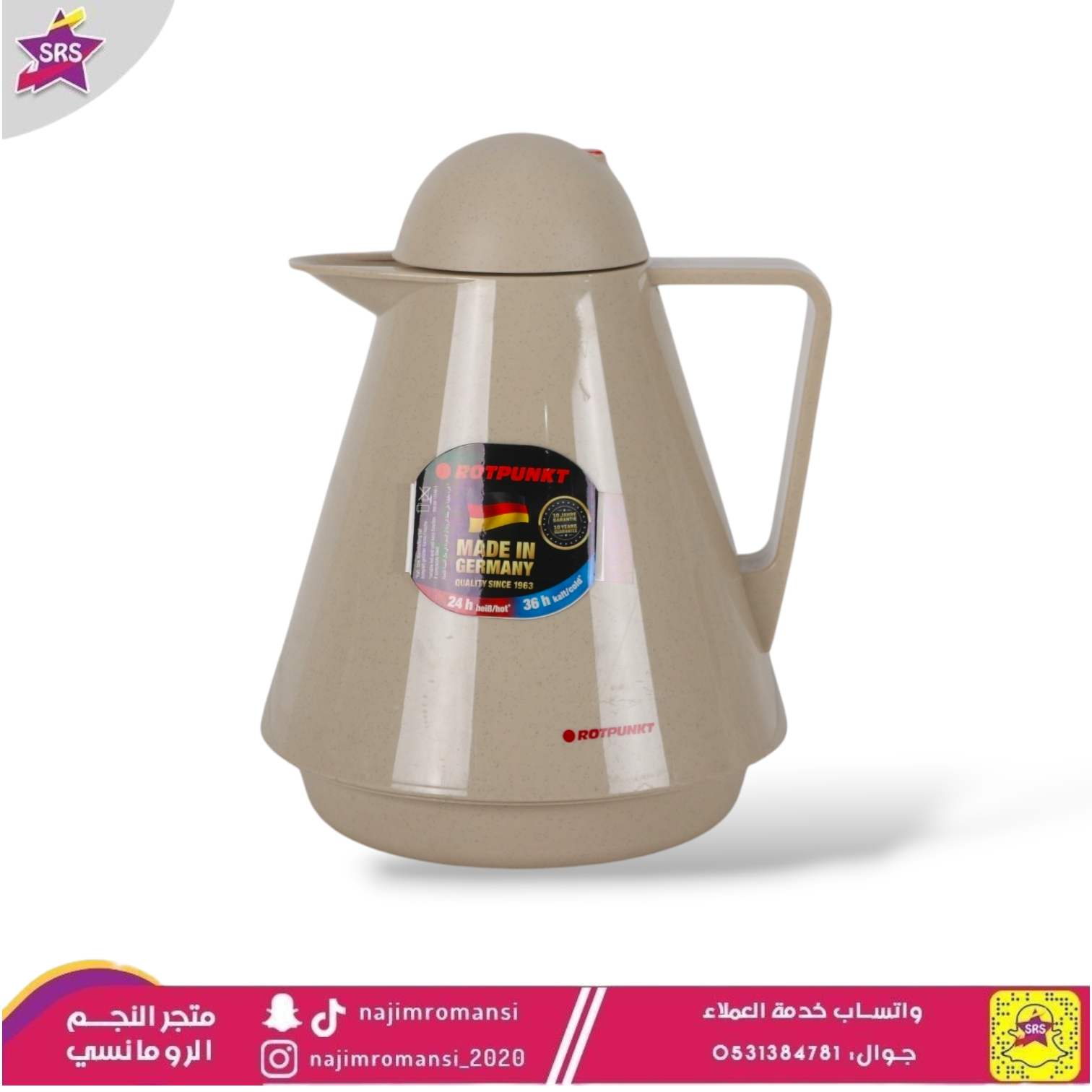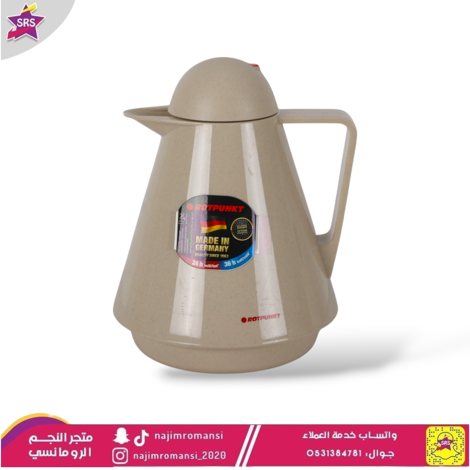 مصنوعة من مادة حافظة لنكهة المشروبات لساعات طويلة- مقبض يد مريح- صناعة ألمانيةمتوفرة بعدة ألوان:- متوفرة بمقاس 1 لتر