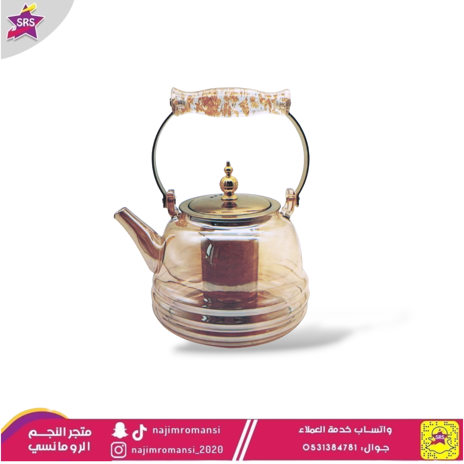 إبريق شاي زجاج بسعة 1 لترإبريق شاي زجاجي مقاوم للحرارة. مصنوع من الزجاج الحراري عالي الجودة.يتميز بتصميم أنيق ولون عسلي جذاب.مزود بمصفاة من الستانلس ستيل لتصفية الشاي أو الأعشاب.