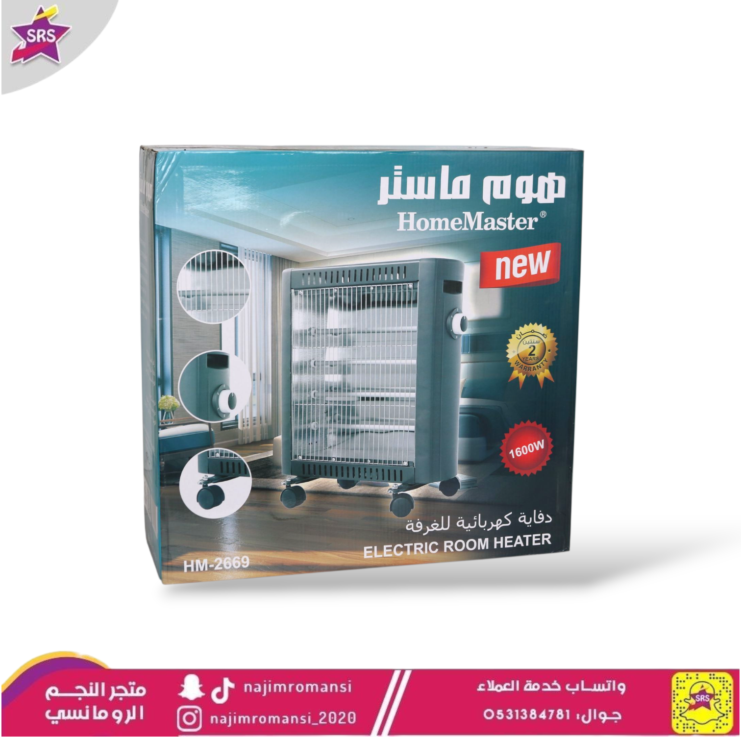 دفاية هوم ماستر الكهربائية HM-2669 هي دفاية عمودية مزدوجة الجوانب بقدرة 1600 واط ومزودة بأربع شمعات تسخين.