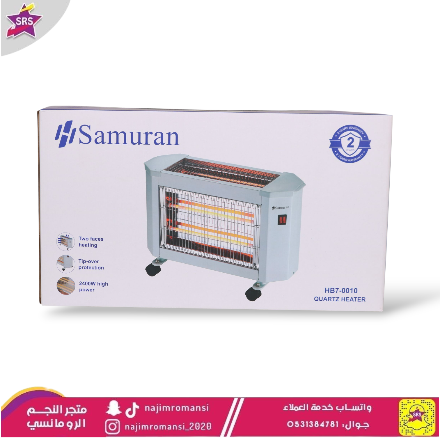 دفاية سخان كوارتز من طراز Samuran HB7-0010، وهو جهاز تدفئة بالأشعة تحت الحمراء يستخدم عنصر تسخين مغلقًا في أنبوب كوارتز.