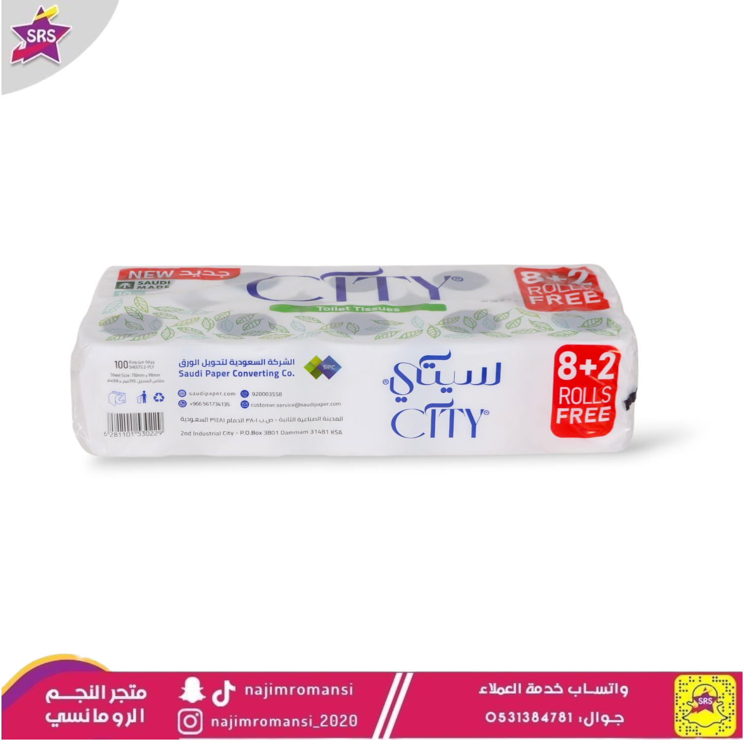 - مناديل حمام رول 100 ورقة 8+2 رول