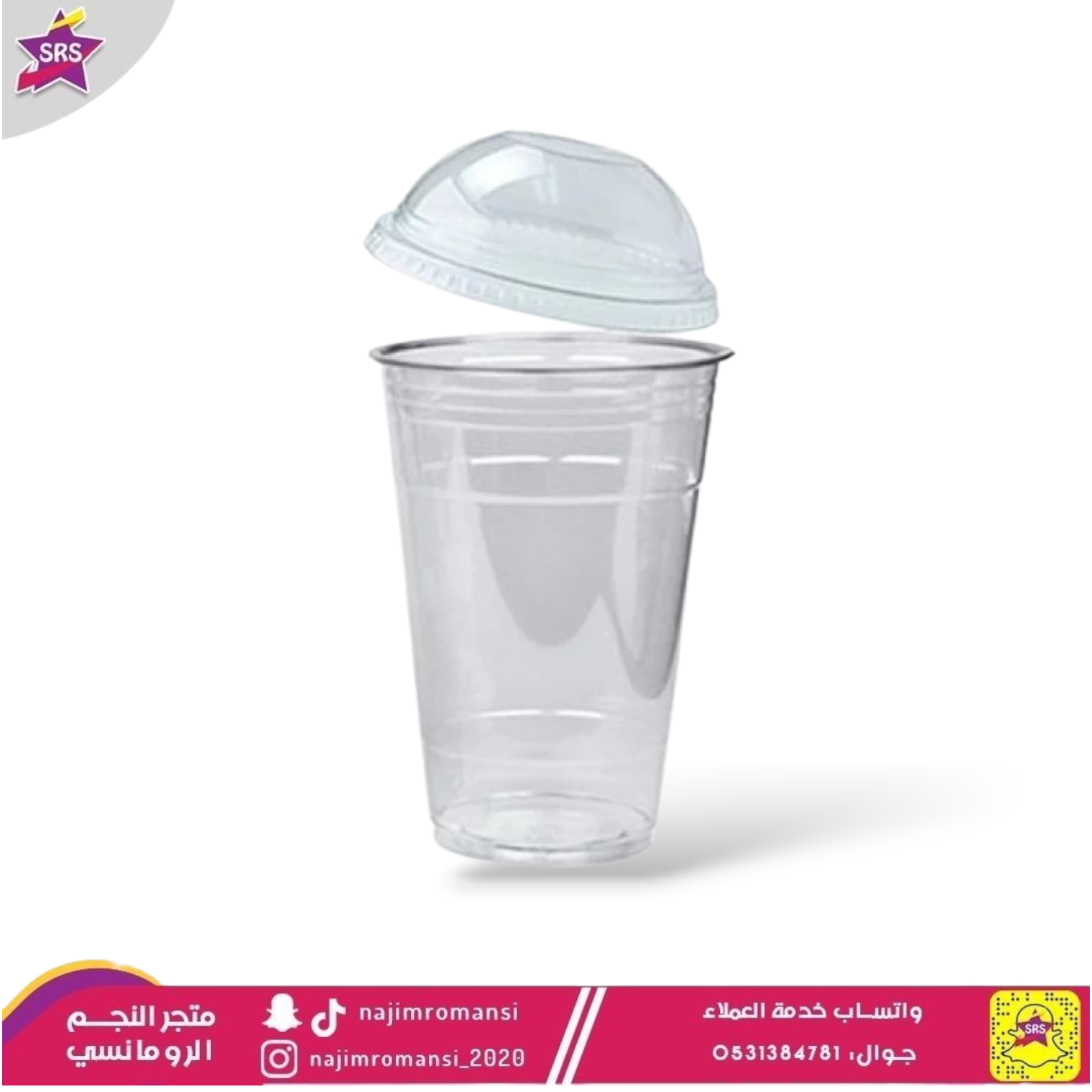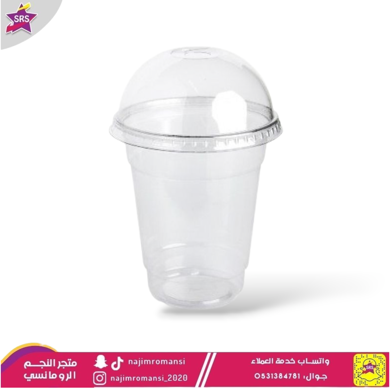 كاسات عصير شفاف 8 اونص مع غطاء نصف كورة شد 50حبة