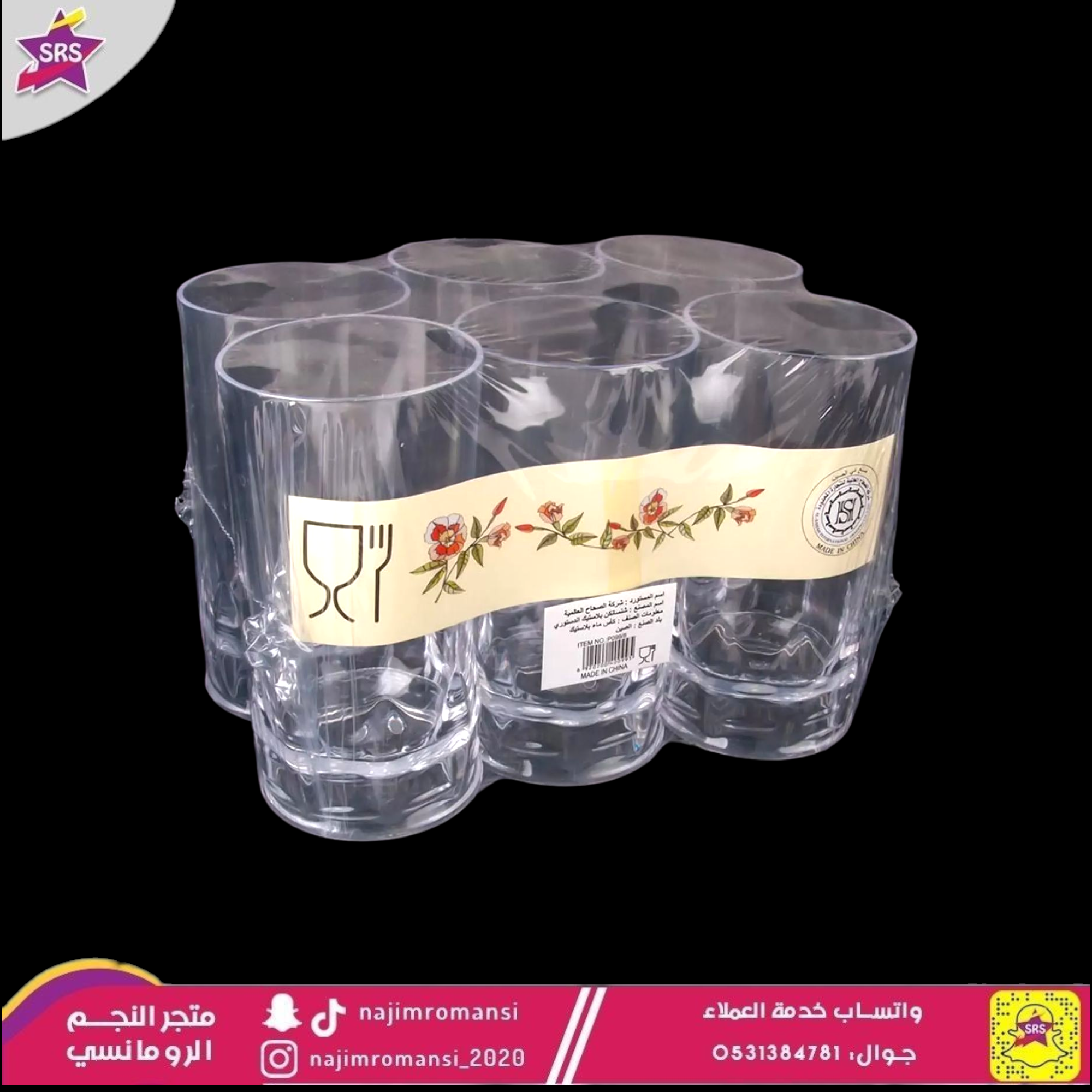 كاسات ,بلاستيك , 6حبة شفاف ,