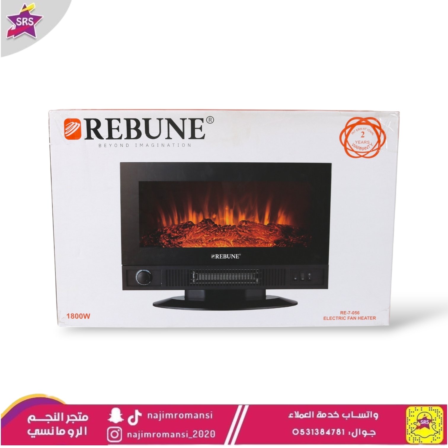 دفاية كهربائية بشاشة لهب وجهاز تحكم عن بعد من ريبون - 1800 واط
