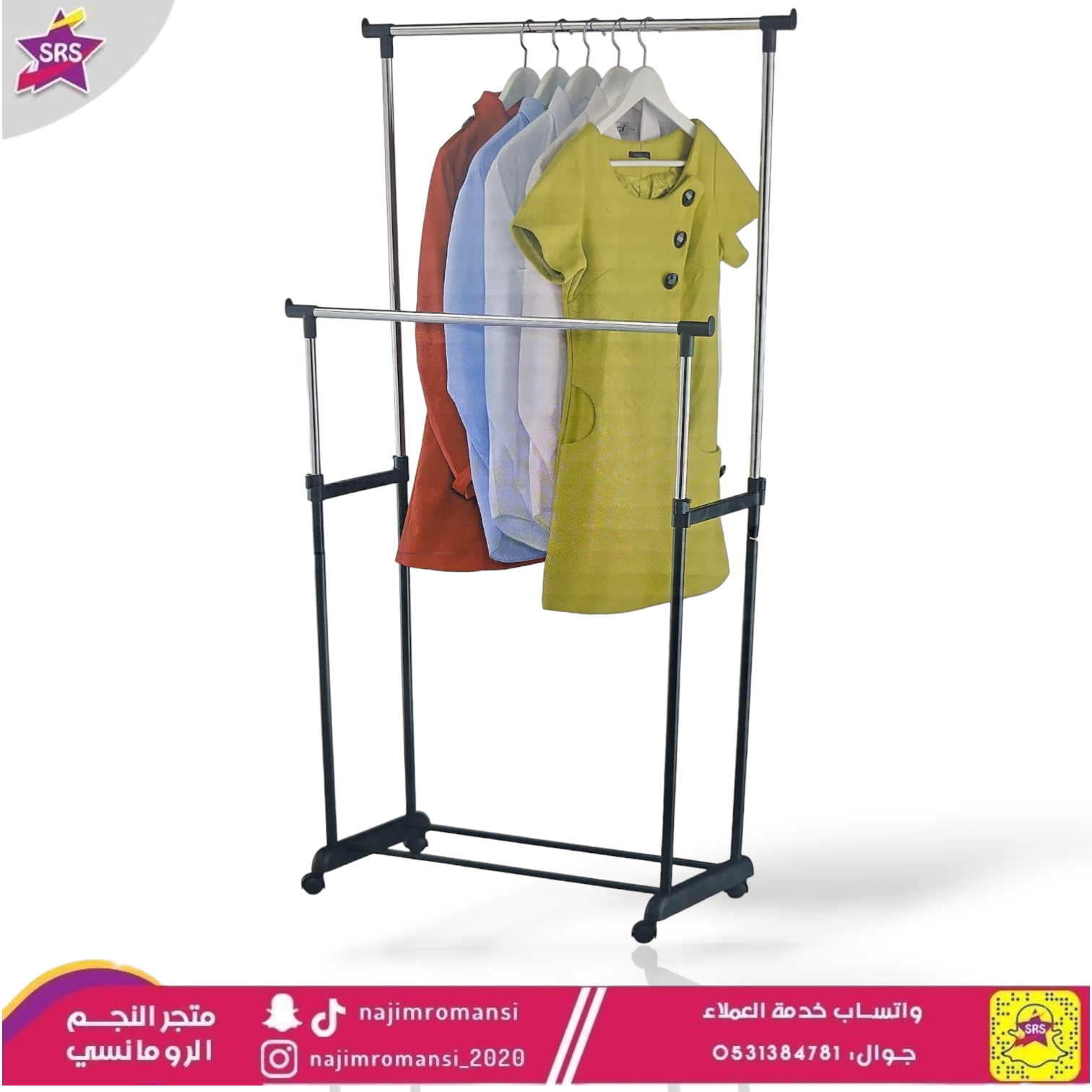 • شماعة ملابس مزدوجة بعجلات