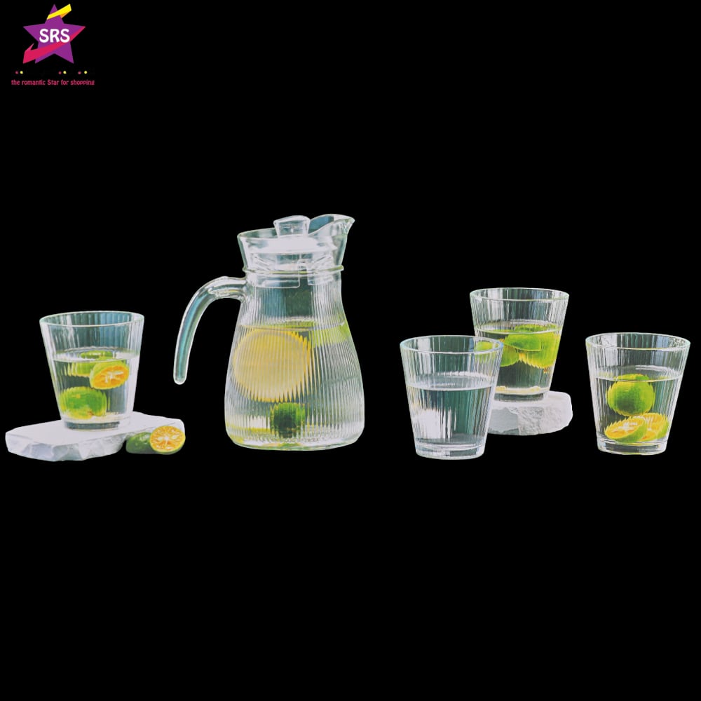 - جيك زجاج مع 4 اكواب شكل خطوط
