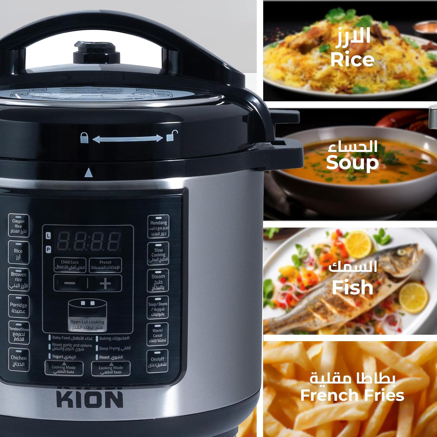 •    قدر ضغط كهربائي بتصميم عصري؛ لطهي طعام سريع، ولذيذ.