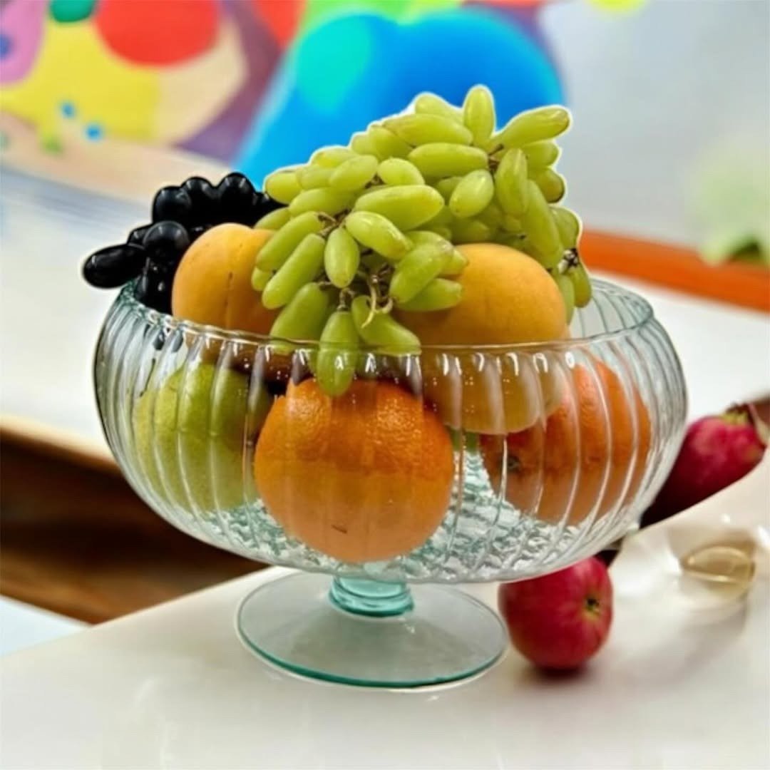 صحن تقديم فواكة زجاج بقاعدة 24سم