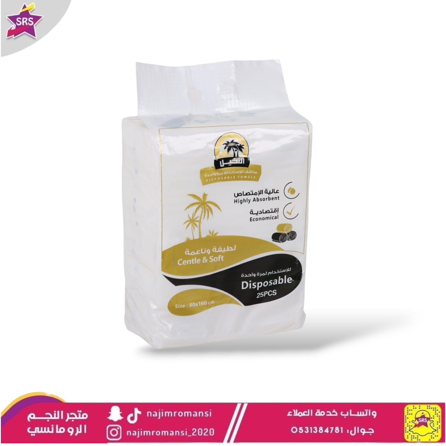 مناشف النخيل بمقاس 80×160 يحتوي على شدة تحتوي على 25 حبة من المناشف المصممة للاستخدام مرة واحدة. هذه المناشف مصنوعة بجودة عالية ومصممة لتوفير الراحة والنظافة القصوى خلال الاستخدام الواحد. يمكن استخدامها في المنزل، أو في الفنادق، أو في المطاعم، أو في أي مكان آخر يتطلب الحاجة للمناشف القابلة للتخلص بعد الاستخدام. تتميز بامتصاصية ممتازة وجودة موثوقة لضمان راحة ورضا العملاء.