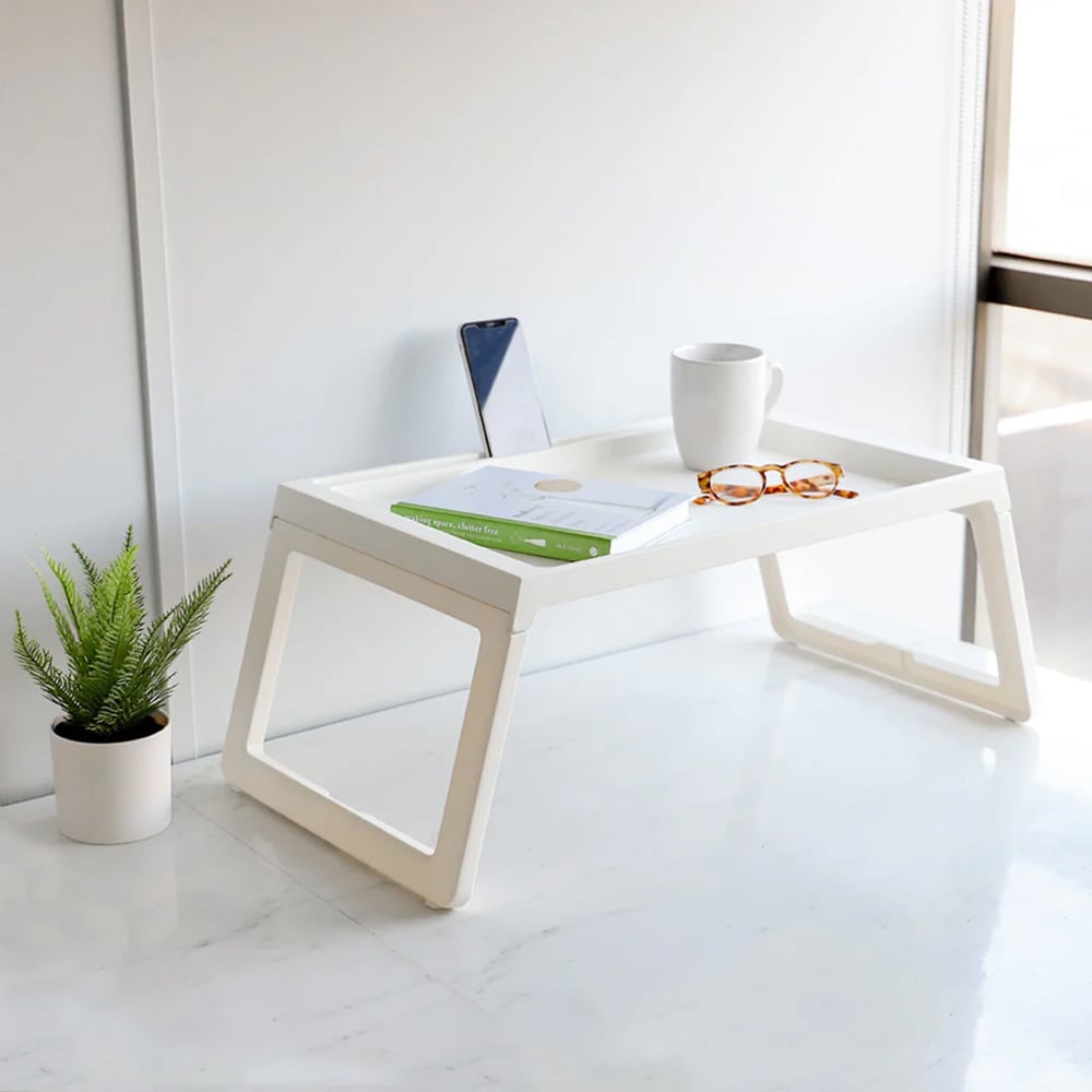 مزودة بأرجل قابلة للطي تجعل طاولة صينية السرير سهلة التخزين.
