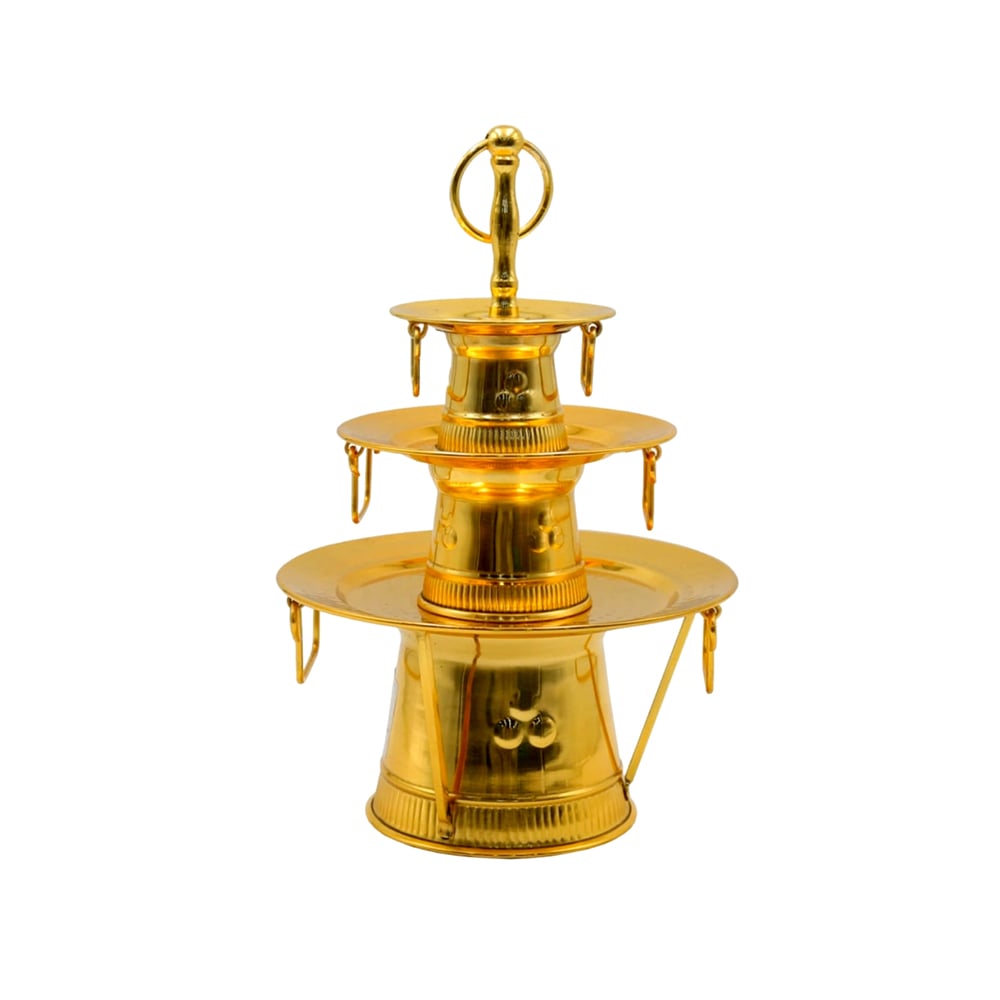 - صحن تقديم تمر وحلويات ستانليس ستيل دائري بقاعدة 3 دور