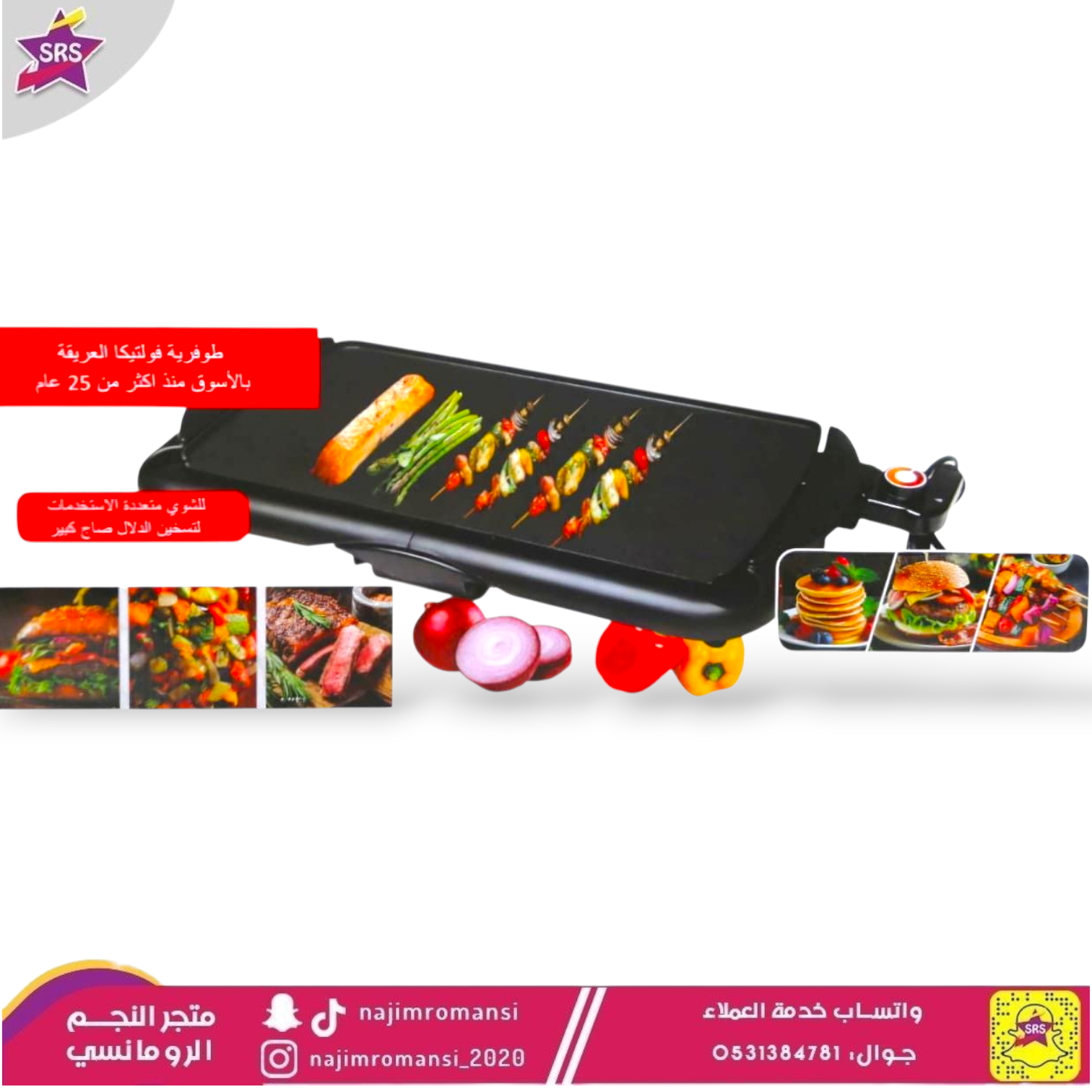 شواية كهربائية ريبون 2000 واط، مصممة لتحضير الطعام بسهولة وبسرعة مع تحكم في درجة الحرارة. سطح الشواء غير لاصق وسهل التنظيف، مما يضمن لك تجربة شواء ممتعة دون عناء. تأتي شواية ريبون مع صفيحة طهي قابلة للفصل وصينية لتقطير الزيت قابلة للإزالة، مما يجعلها الخيار المثالي لحفلات الشواء والوجبات السريعة.