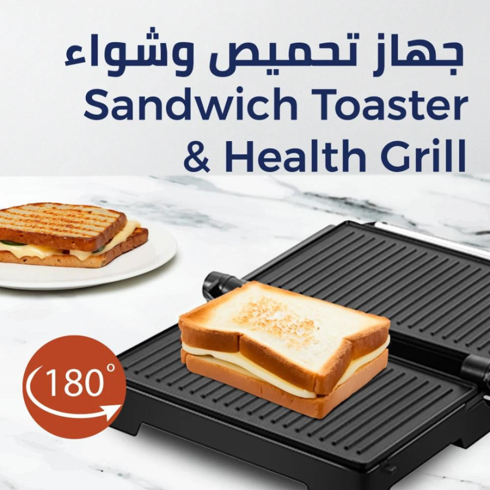 - تأتي بسطح تسخين مانع للإلتصاق أثناء الاستخدام يمكن استخدامة علي الوجهين عند فتحه 180 درجة