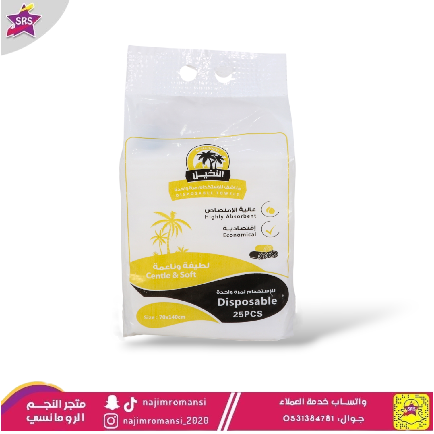 مناشف النخيل بمقاس 70×140 يحتوي على شدة تحتوي على 25 حبة من المناشف المصممة للاستخدام مرة واحدة. هذه المناشف مصنوعة بجودة عالية ومصممة لتوفير الراحة والنظافة القصوى خلال الاستخدام الواحد. يمكن استخدامها في المنزل، أو في الفنادق، أو في المطاعم، أو في أي مكان آخر يتطلب الحاجة للمناشف القابلة للتخلص بعد الاستخدام. تتميز بامتصاصية ممتازة وجودة موثوقة لضمان راحة ورضا العملاء.