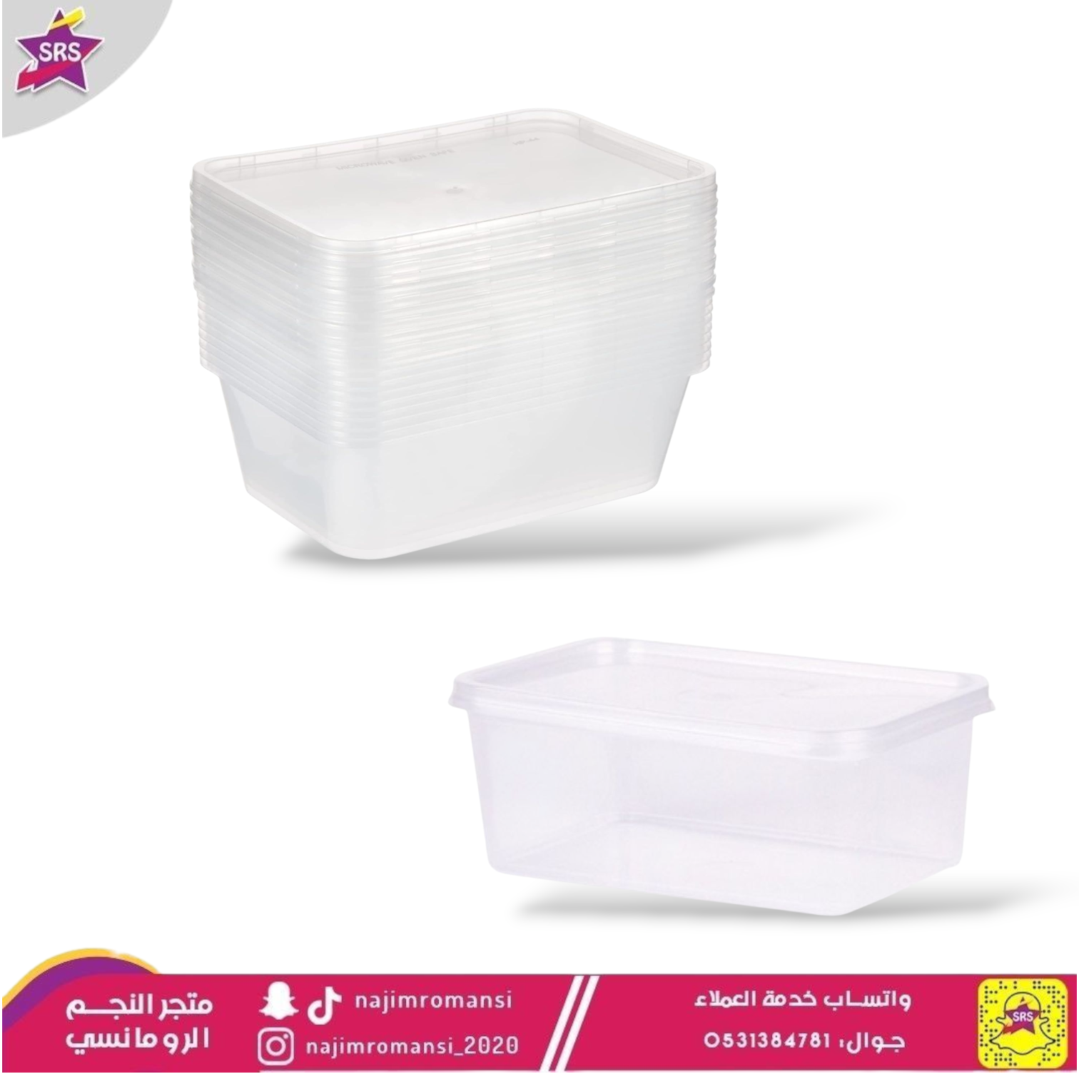 علب بلاستيك مستطيل شفاف مقاس 1000مل 6حبات