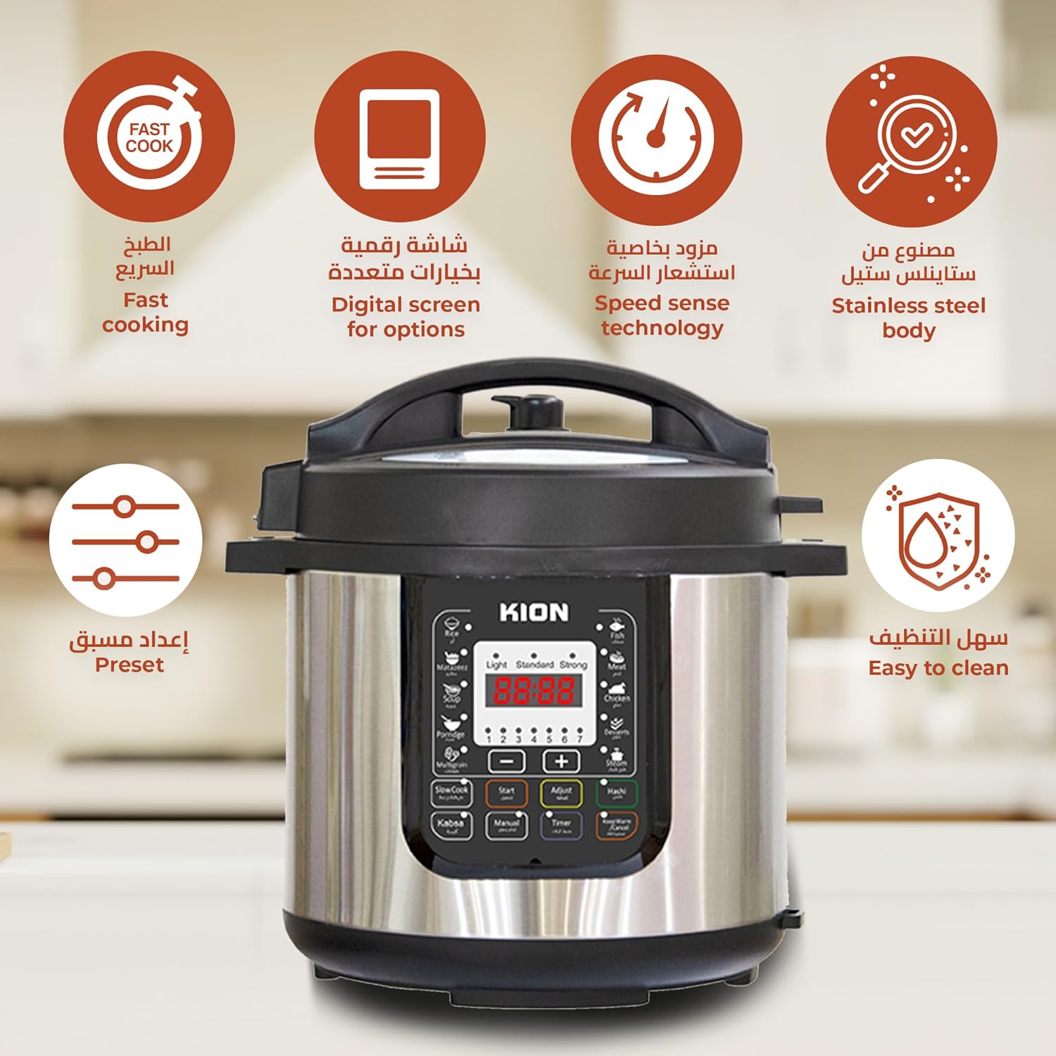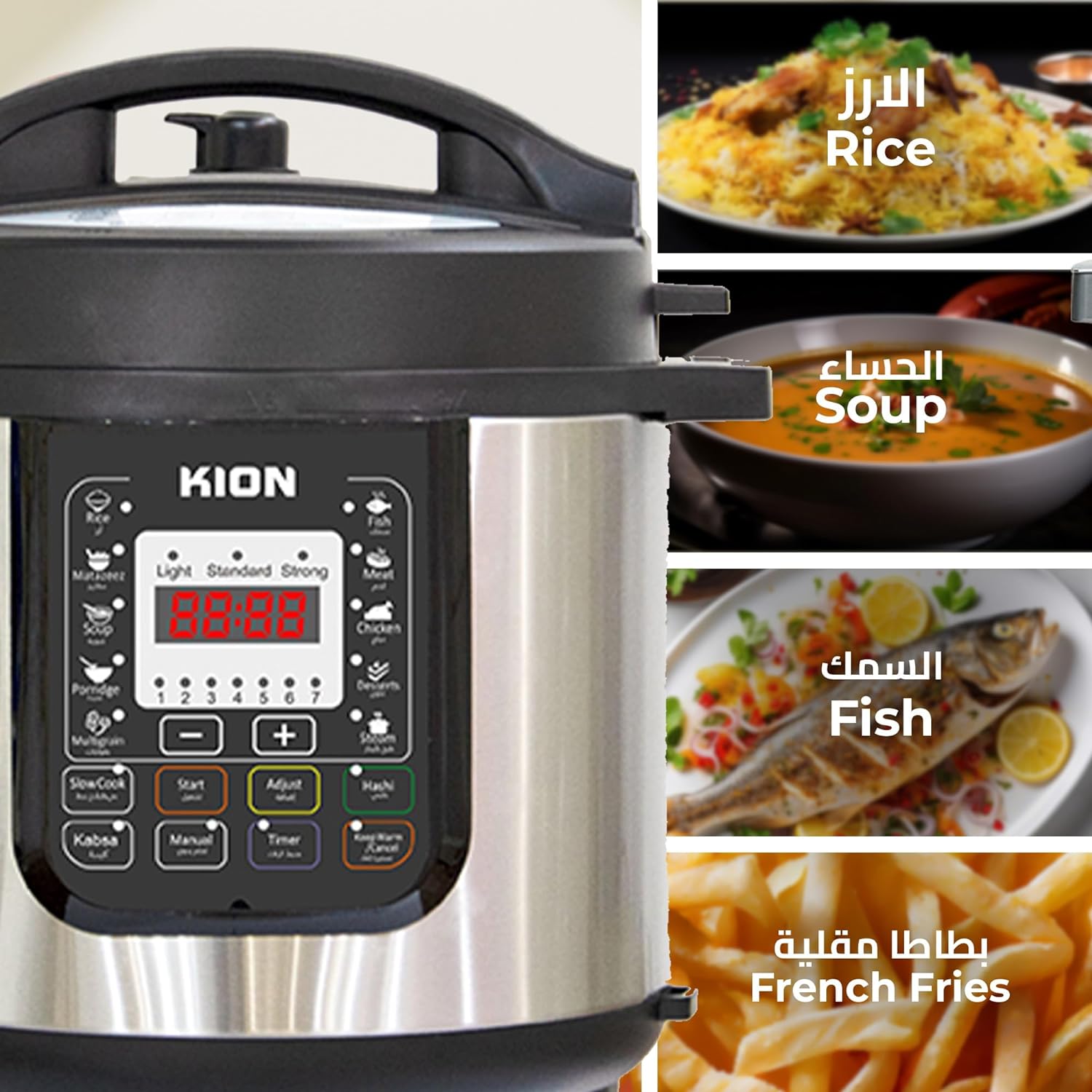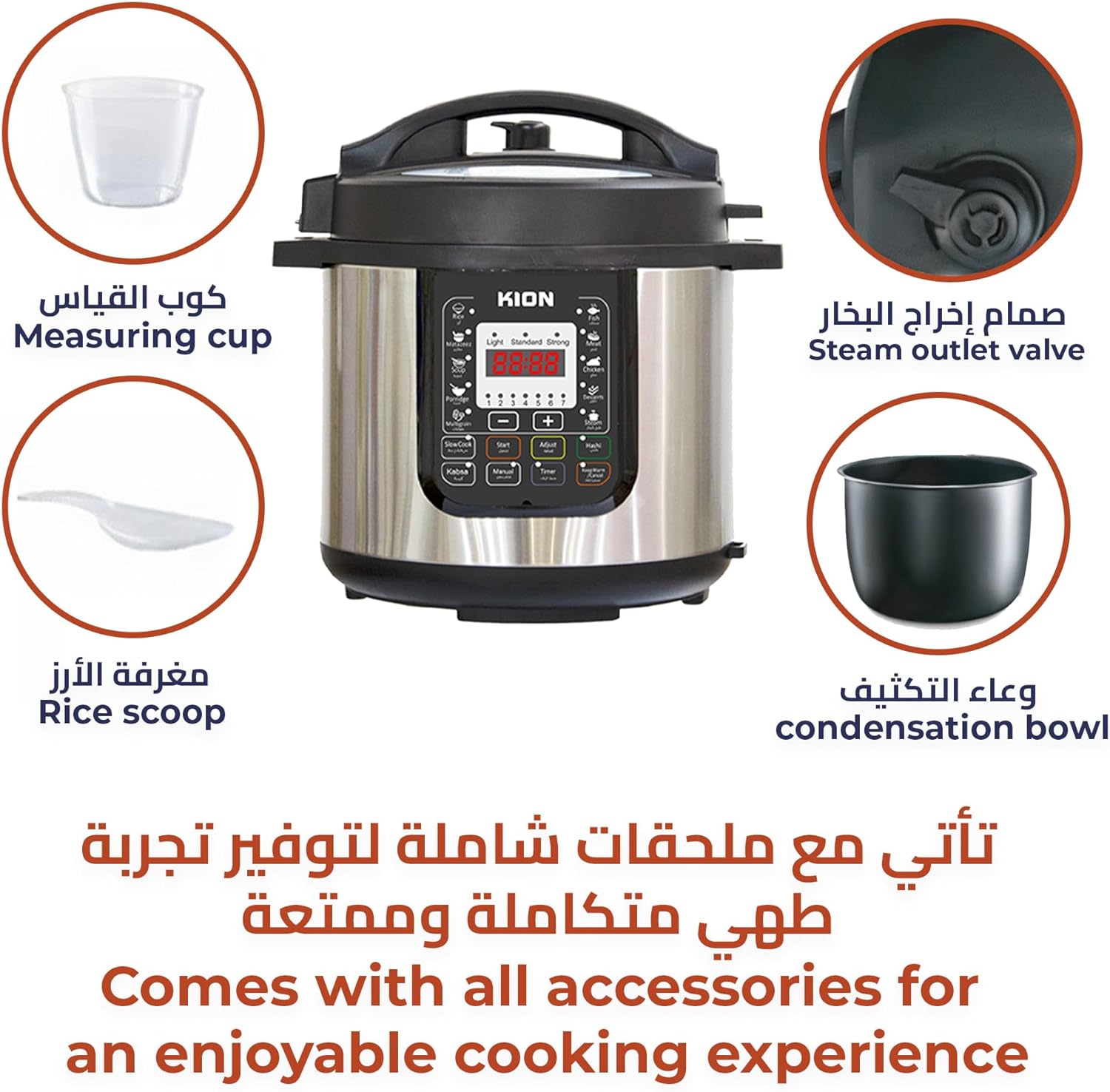 • ● خاصية المنبه: تساعدك الساعة الرقمية المدمجة على ضبط جدولك المحدد، ما يضمن أن الأطباق جاهزة عندما تحتاج إليها، ما يجعل تخطيط الوجبات أسهل.